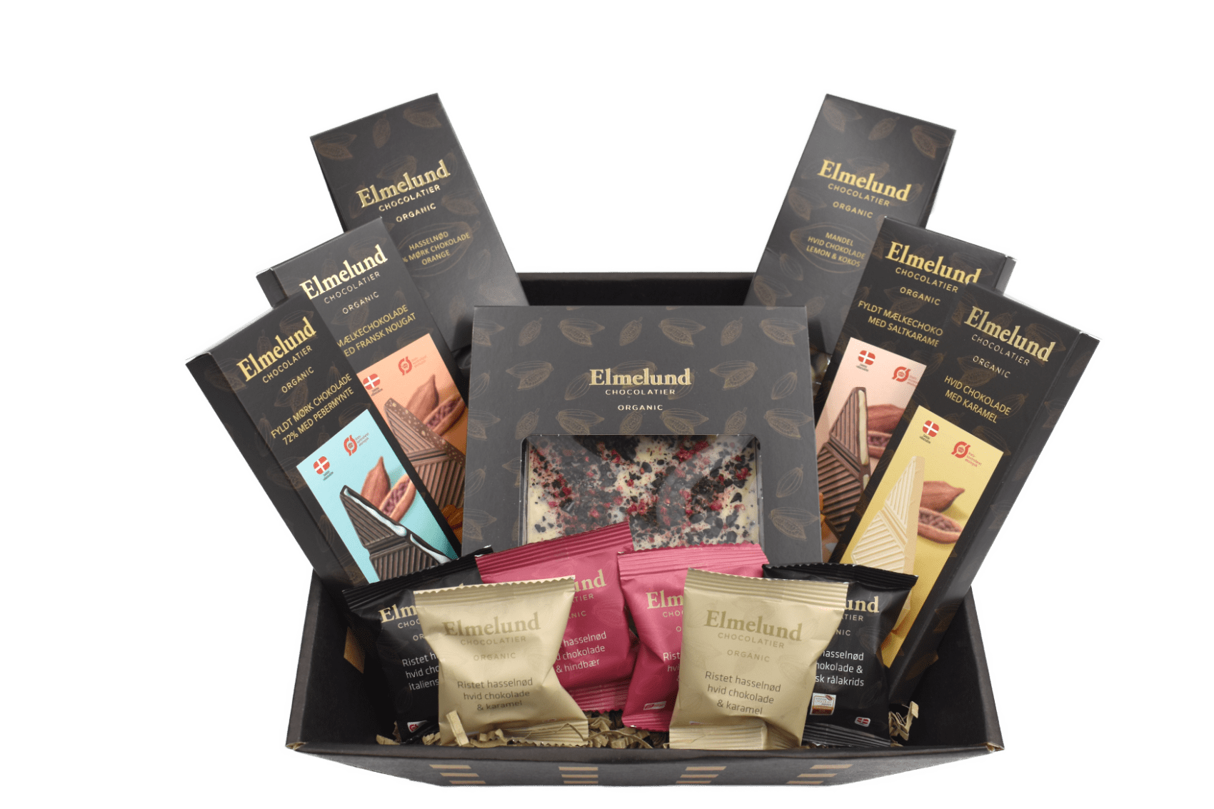 Et lille udvalg af økologisk chokolade fra vores Elmelund brand. Her får du lækre dragée, og mange forskellige chokoladeplader .