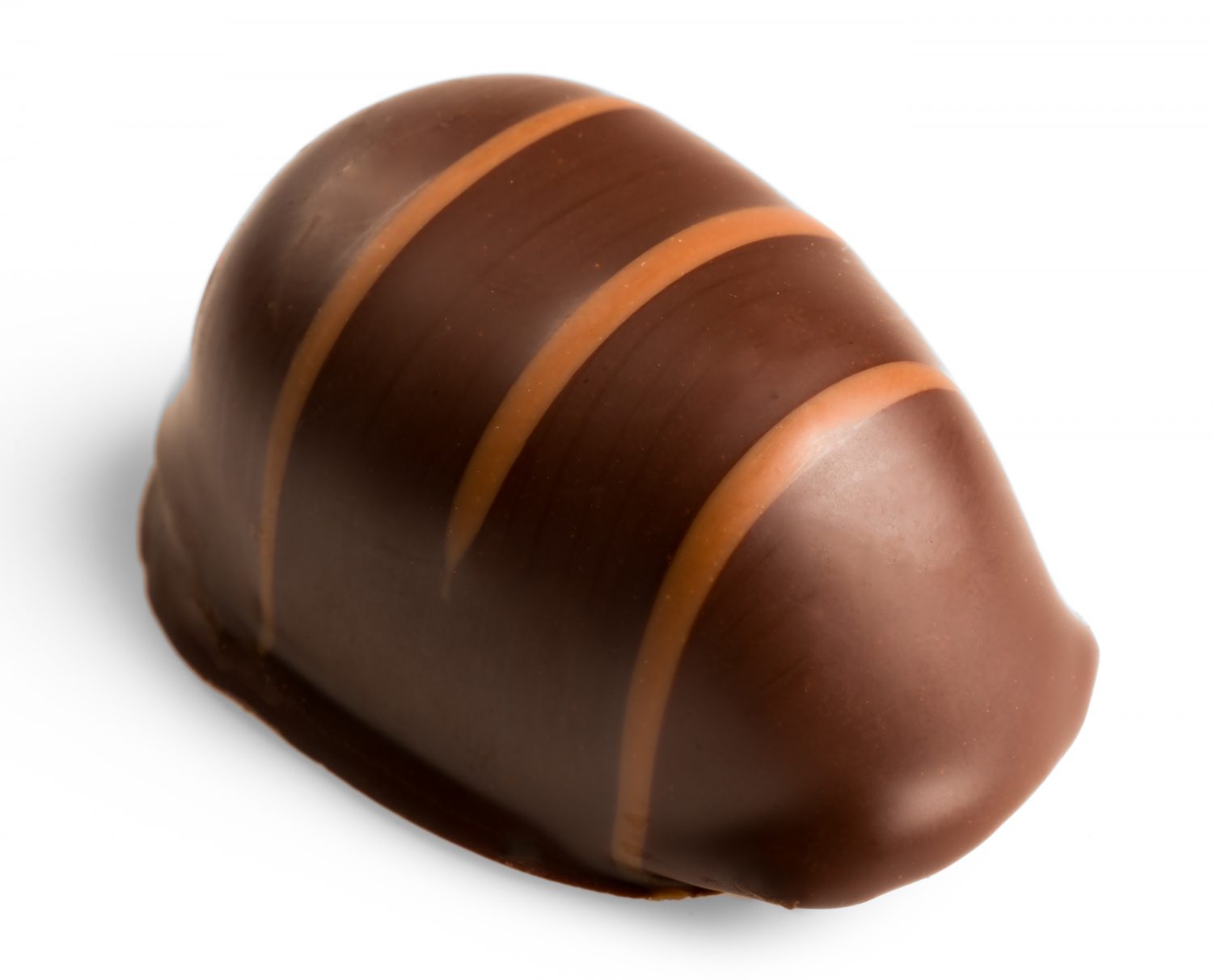 Marcipanæg med hasselnougat, overtrukket med 70% mørk chokolade. Kombinationen af den blide marcipan og den kraftige og fyldige nougat skaber sammen med vores 70% mørke chokolade et marcipanæg som skiller sig ud fra mængden. Ægget er dekoreret med streger af mælkechokolade.